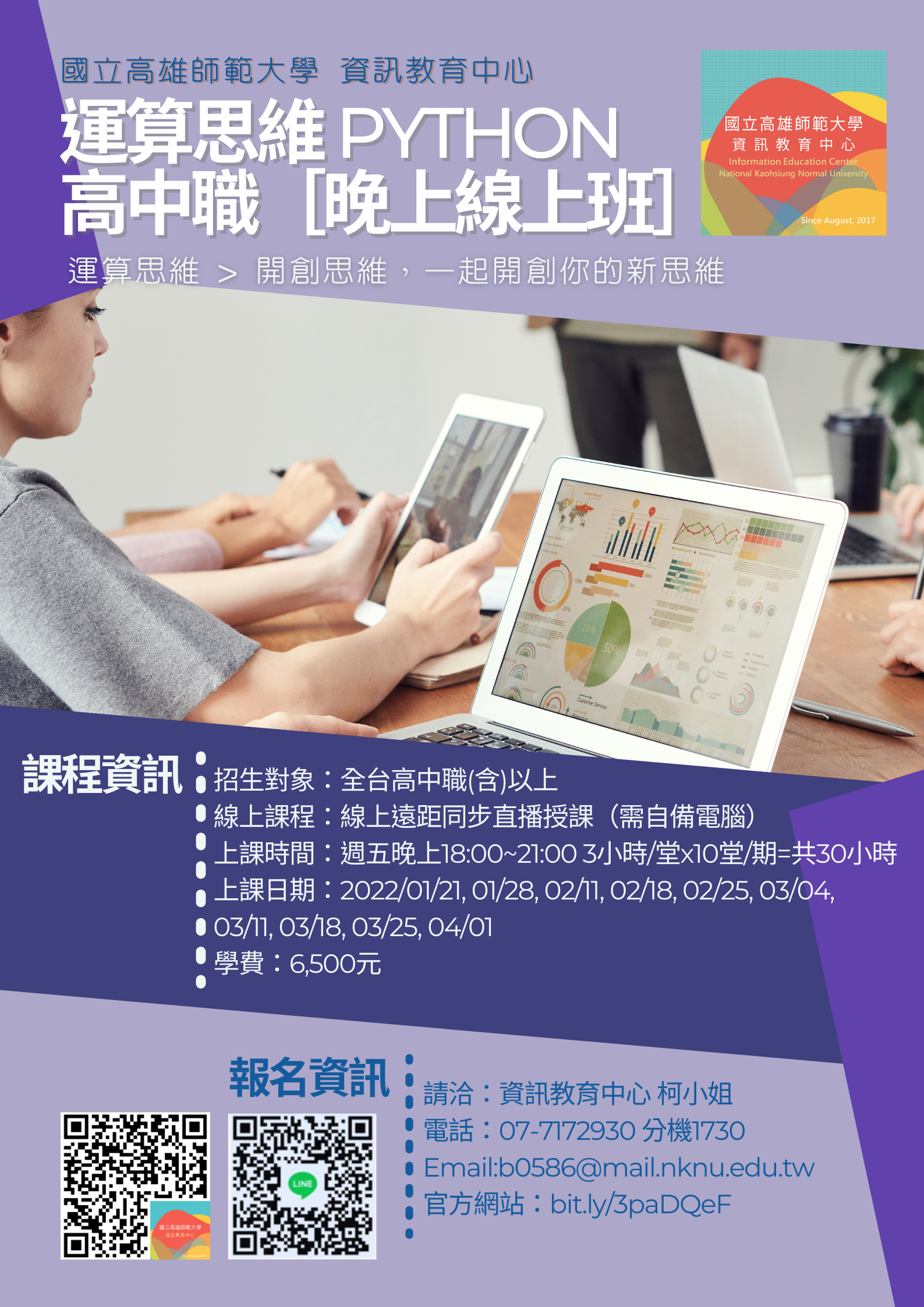 一、課程名稱:運算思維系列:Python 課程【第1期】【高中】【線上班】。