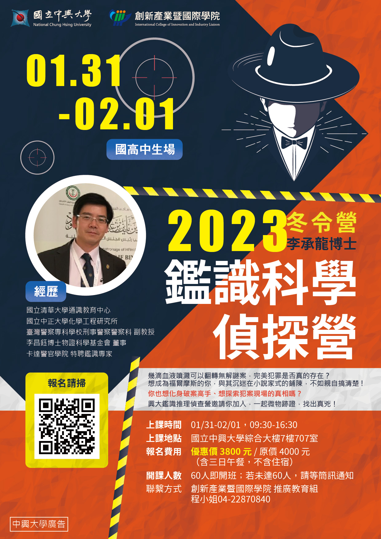 國立中興大學 創新產業暨國際學院【2023冬令營隊-鑑識科學偵探營】