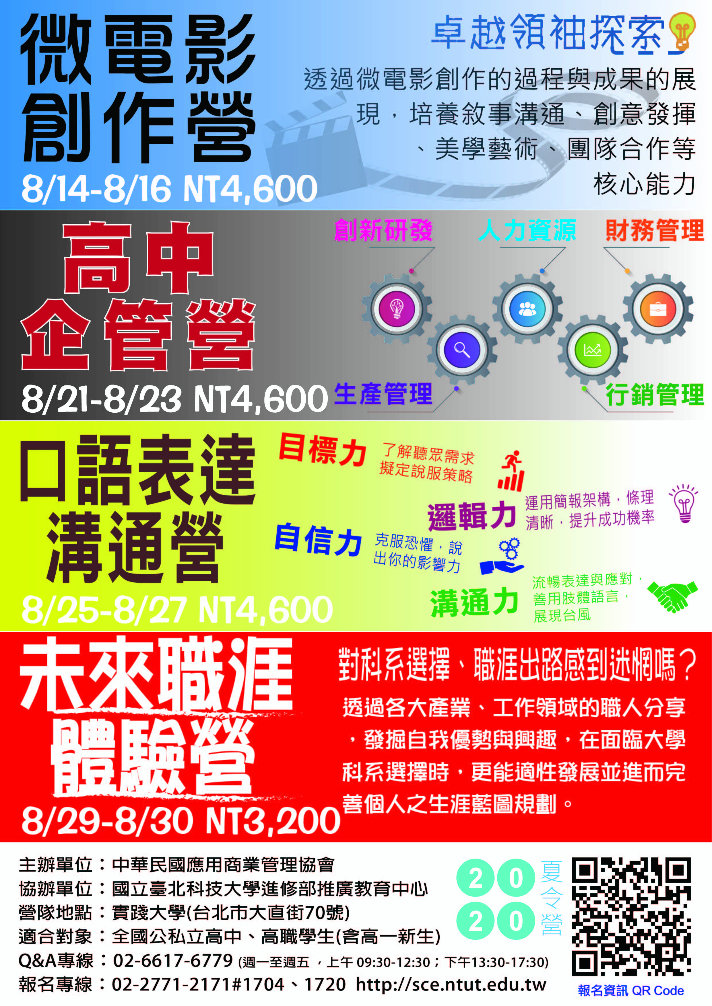 營隊費用及詳細資訊請參考:2020暑假【卓越領袖探索系列】報名表